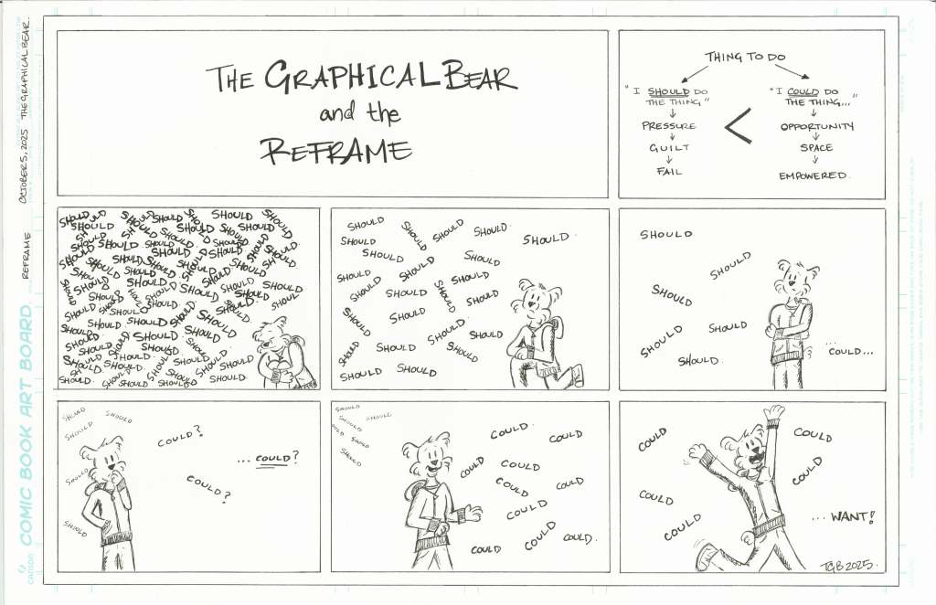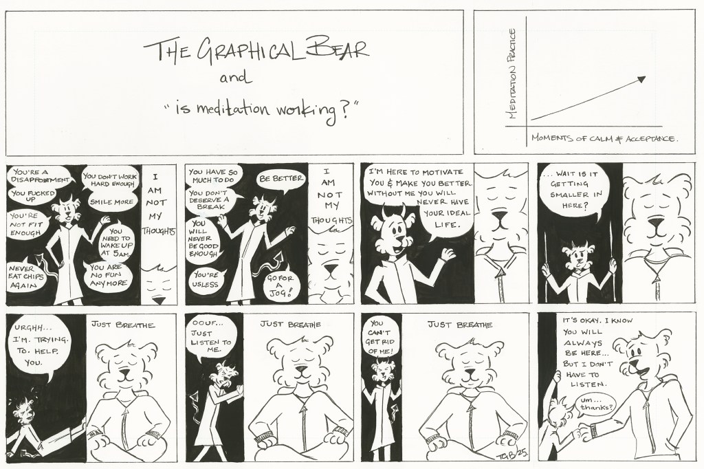 My name is Tiff Yaxley and I draw comics. My character “The Graphical Bear” is basically me, and she is navigating the world the best she can. I love a good chart or graph, they are often incorporated in my work, and I think it’s a hilarious way to show the relationships of life’s variables.